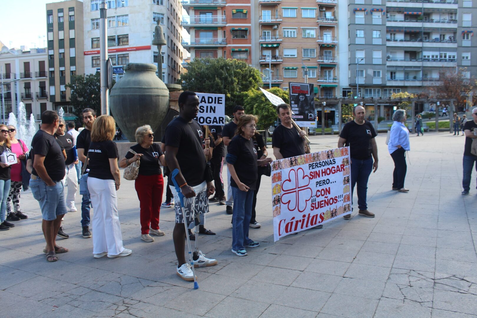 Reivindicación de Cáritas Jaén celebrada en la Plaza de la Constitución de Jaén.