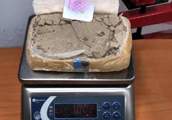 Tras asegurar la zona, los agentes recuperaron el objeto arrojado, que consistía en una bolsa verde en cuyo interior se encontraba un paquete envuelto en plástico transparente. En su interior había una sustancia compacta y pulverulenta de color marrón.