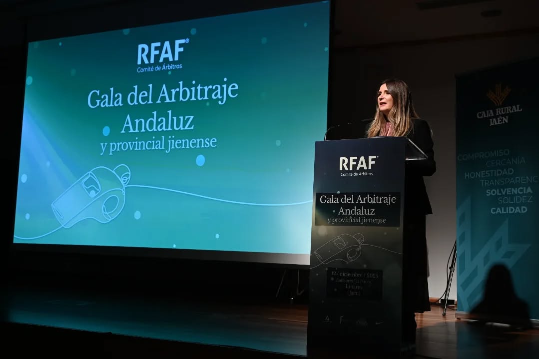 «Tenemos que decir que Linares cuenta con una excepcional cantera de futbolistas, con varios clubes que hacen hincapié en el deporte base y también a nivel profesional. Pero en Linares también tenemos una buena cantera de árbitros», señaló la alcaldesa en su intervención, no sin antes agradecer al presidente de la RFAF que haya pensado en la ciudad minera para esta celebración, porque es «cuna de talento en el deporte y por qué no decirlo, en el arbitraje nacional”, indicó Del Olmo.