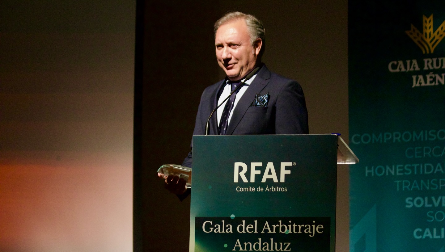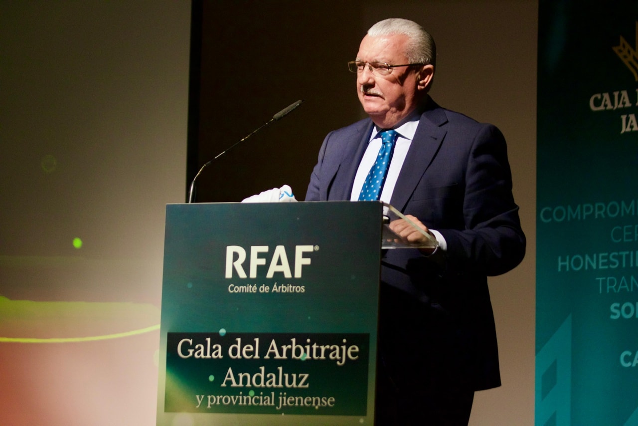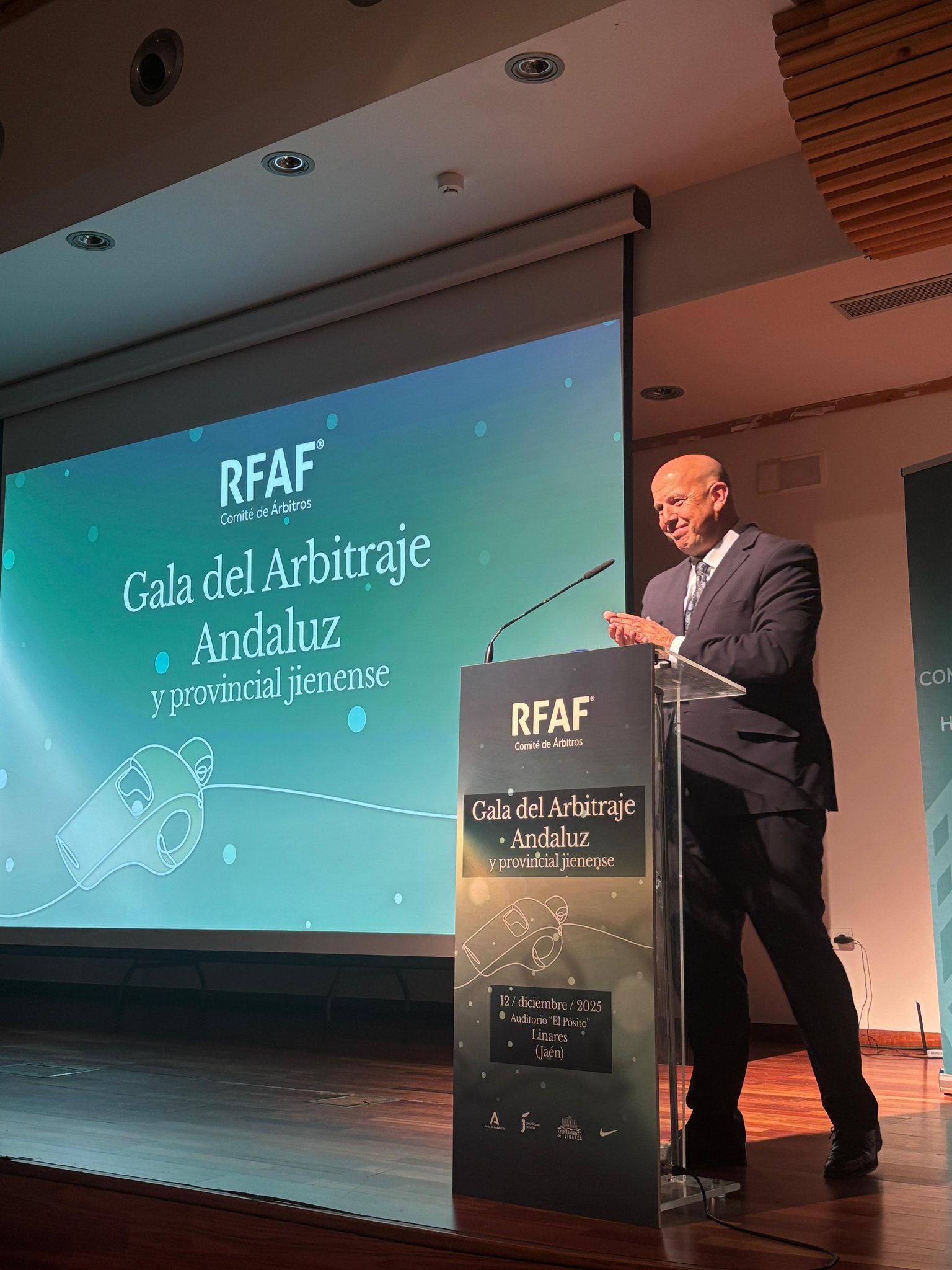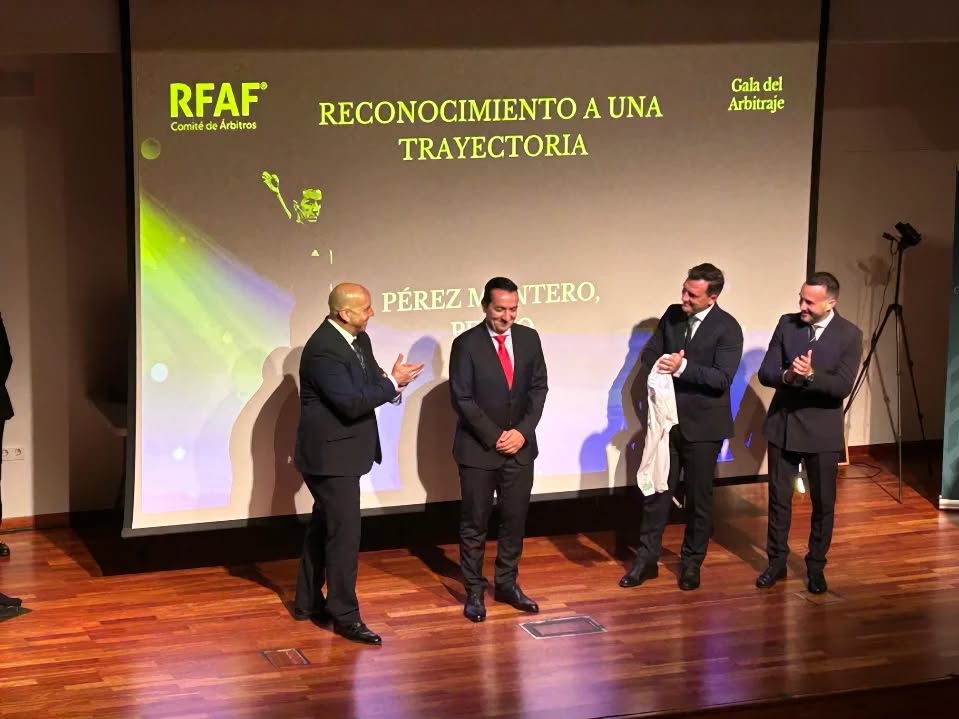 Durante el acto se reconoció la labor de Luis Medina Cantalejo, exárbitro internacional y hasta el pasado verano presidente de la Comisión Técnica de Árbitros (CTA), así como del excolegiado linarense de la Primera División, Pedro Pérez Montero.
