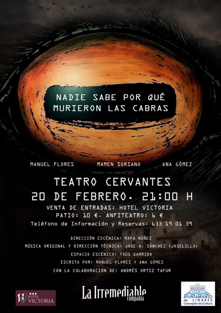 El Teatro Cervantes acogerá el próximo 20 de febrero (21.00 horas) el estreno de ‘Nadie sabe por qué murieron las cabras’, una propuesta escénica que sumerge al espectador en la crudeza del mundo rural y en un clima de suspense psicológico sostenido. La obra, escrita por Manuel Flores y Ana Gómez, bebe del universo narrativo del escritor linarense Andrés Ortiz Tafur para explorar el silencio del mundo rural.