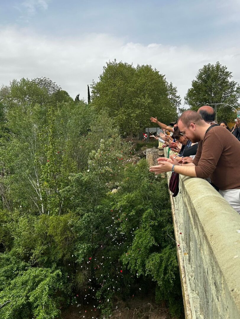 La comunidad educativa, junto a familiares de los alumnos, ha participado en una jornada de convivencia que ha incluido un desplazamiento hasta las riberas del río Guadalimar para cumplir con el rito de la tirada de pétalos, reforzando así el vínculo con sus raíces y el recuerdo de sus antepasados.