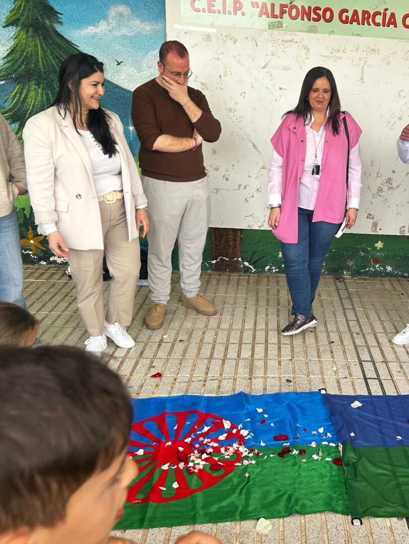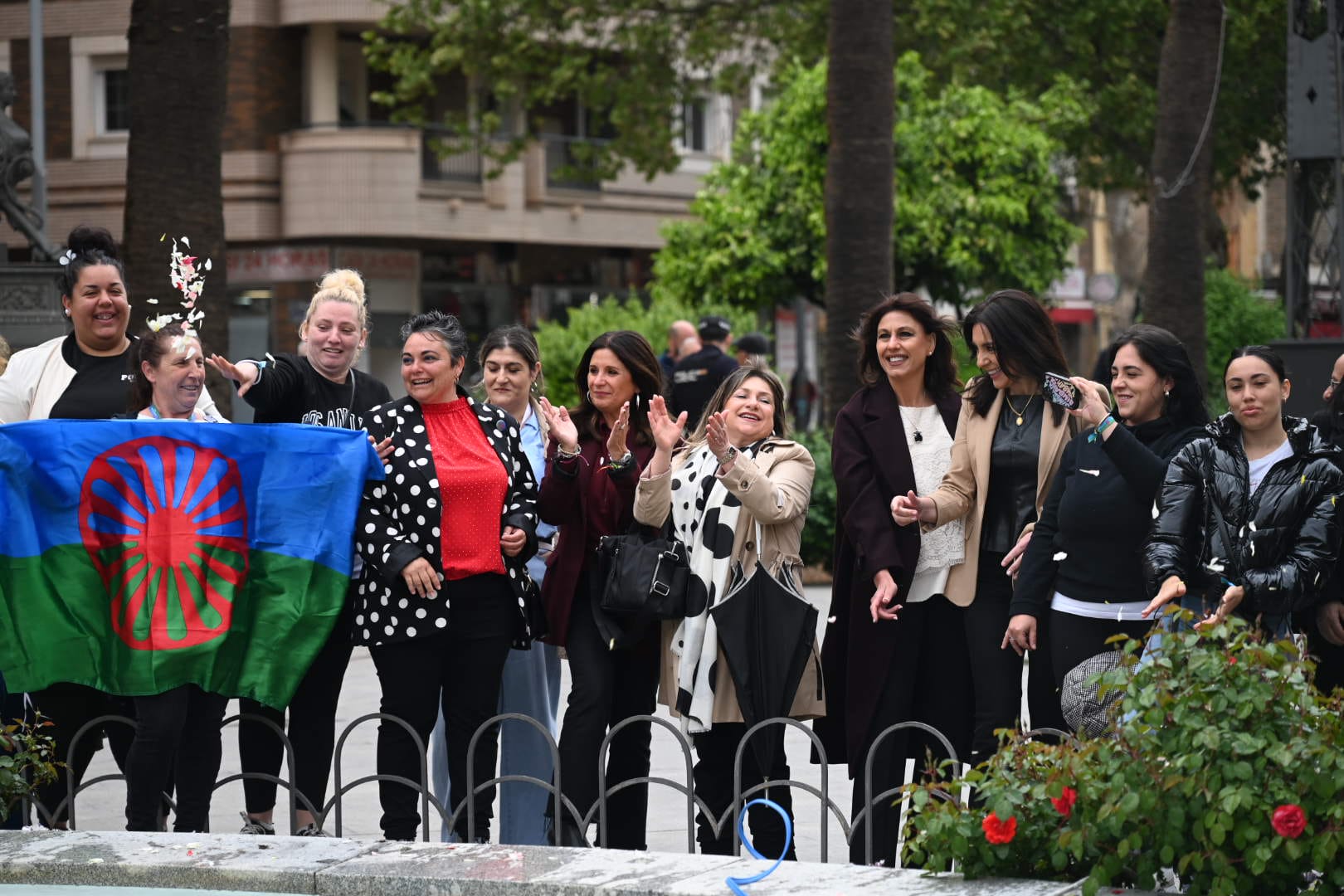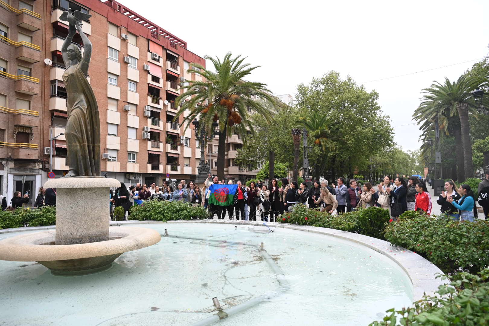 En esta ocasión, el emotivo lanzamiento de pétalos de flores al agua se ha realizado en la fuente de la Plaza de la Constitución como símbolo de libertad y en memoria de las víctimas del pueblo gitano a lo largo de la historia.