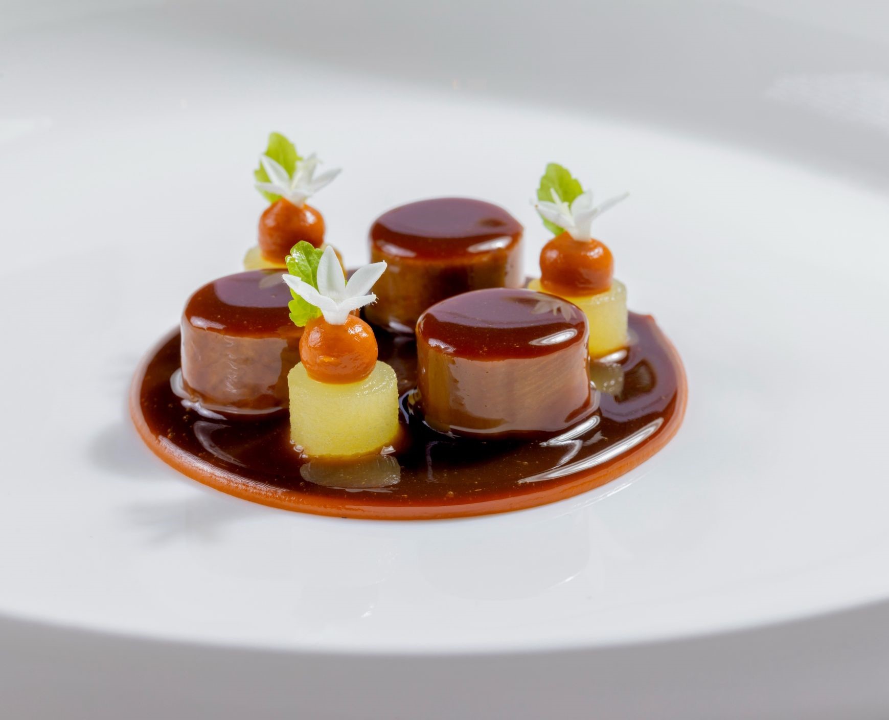Álvaro Salazar ha sabido combinar las raíces andaluzas y mallorquinas en sus creaciones, con los ingredientes que aportan las costas y las masías de estas islas. Su cocina es mediterránea, pero no se queda ahí, porque en sus extensos menús degustación el radar se expande hacia otros sabores de la Península.