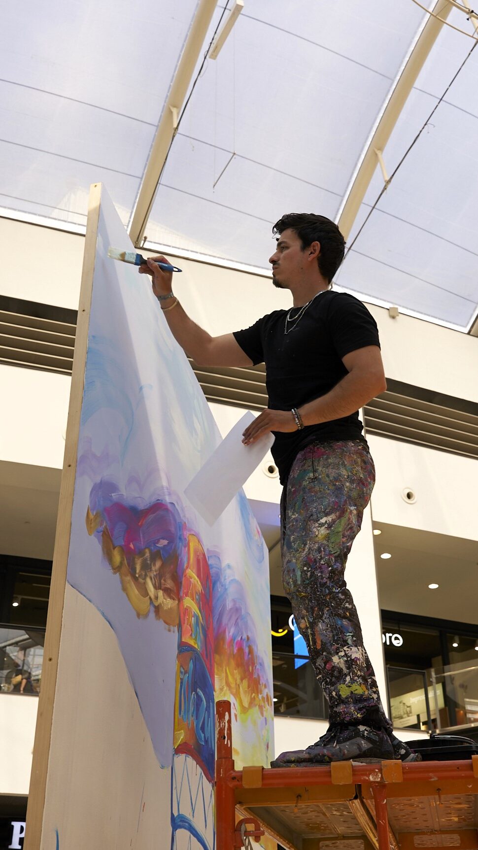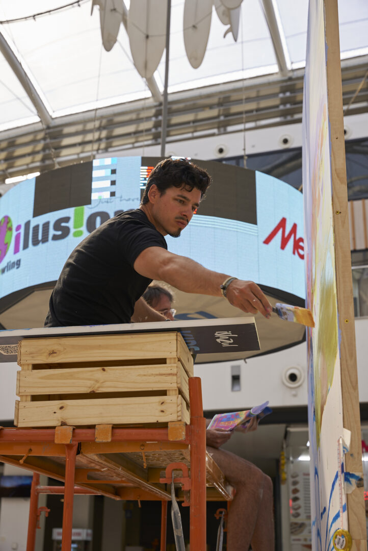 Pero Islazul, que cuenta con una superficie de 250.000 metros construidos, de los que 90.000 son suelo comercial útil, no solo se esfuerza por la sostenibilidad. También está comprometido con el arte y la cultura. Desde este lunes, los visitantes que acudan a este enorme centro comercial, uno de los mayores de España, con 180 locales de las principales marcas de moda, complementos, ocio y restauración, podrán admirar la obra de un linarense: Manuel Delgado Díaz, más conocido como Murfin.