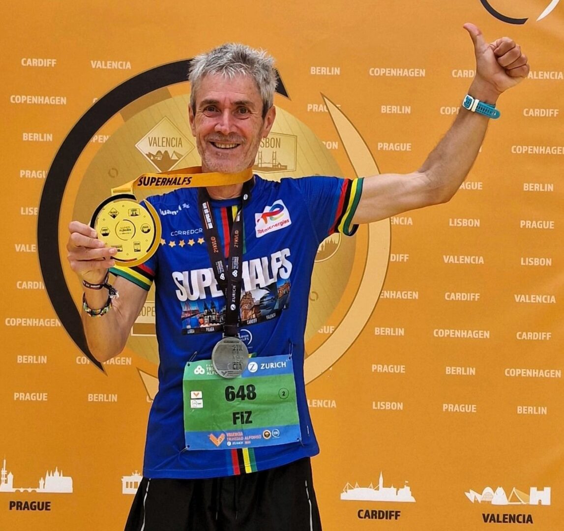 Es cierto que los compromisos profesionales, sociales y familiares han hecho que baje un poco el pistón, -«tampoco la edad no perdona», advierte-, pero cuando se acerca una carrera se enciende en él una luz de alerta, que acelera sus pulsaciones y sus ganas de desafiarse a sí mismo. «Me encanta la competición, cada vez que llega una carrera siento un runruneo por todo el cuerpo, me motiva ponerme un dorsal y echar a correr, el olor a crema antiinflamatorio. Esa lucha contra uno mismo es suficiente para que crezca en mi el estado de motivación», asegura.