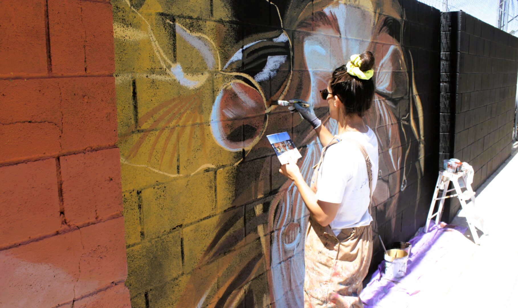 La artista Ana Corazón durante la realización del mural del Proyecto Street Art Plus. Foto: Javier Esturillo