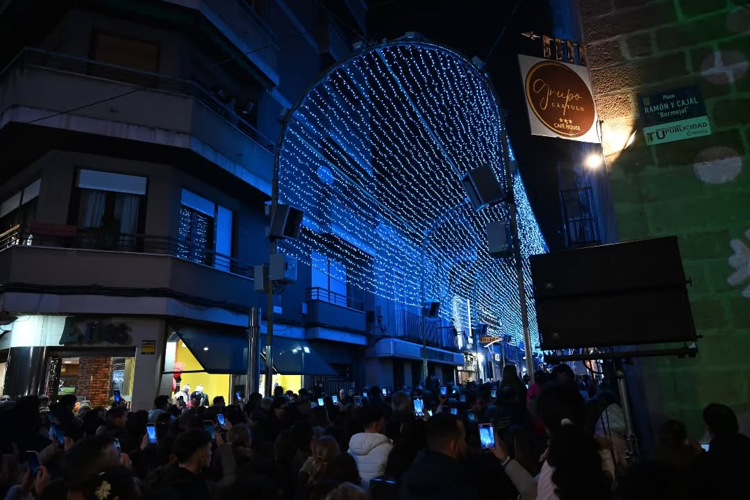 Linares dio este jueves la bienvenida a la Navidad Plaza de los Bermejales con el tradicional encendido del alumbrado extraordinario, oficiado por la alcaldesa, Auxi del Olmo, en la Plaza Ramón y Cajal. Un espectáculo visual y musical ha protagonizado este acto en el que han participado el delantero azulillo Hugo Díaz y la cantante Teresa Mood, que encarnarán en estas fiestas al Heraldo Real y a la Estrella de la Ilusión, respectivamente.