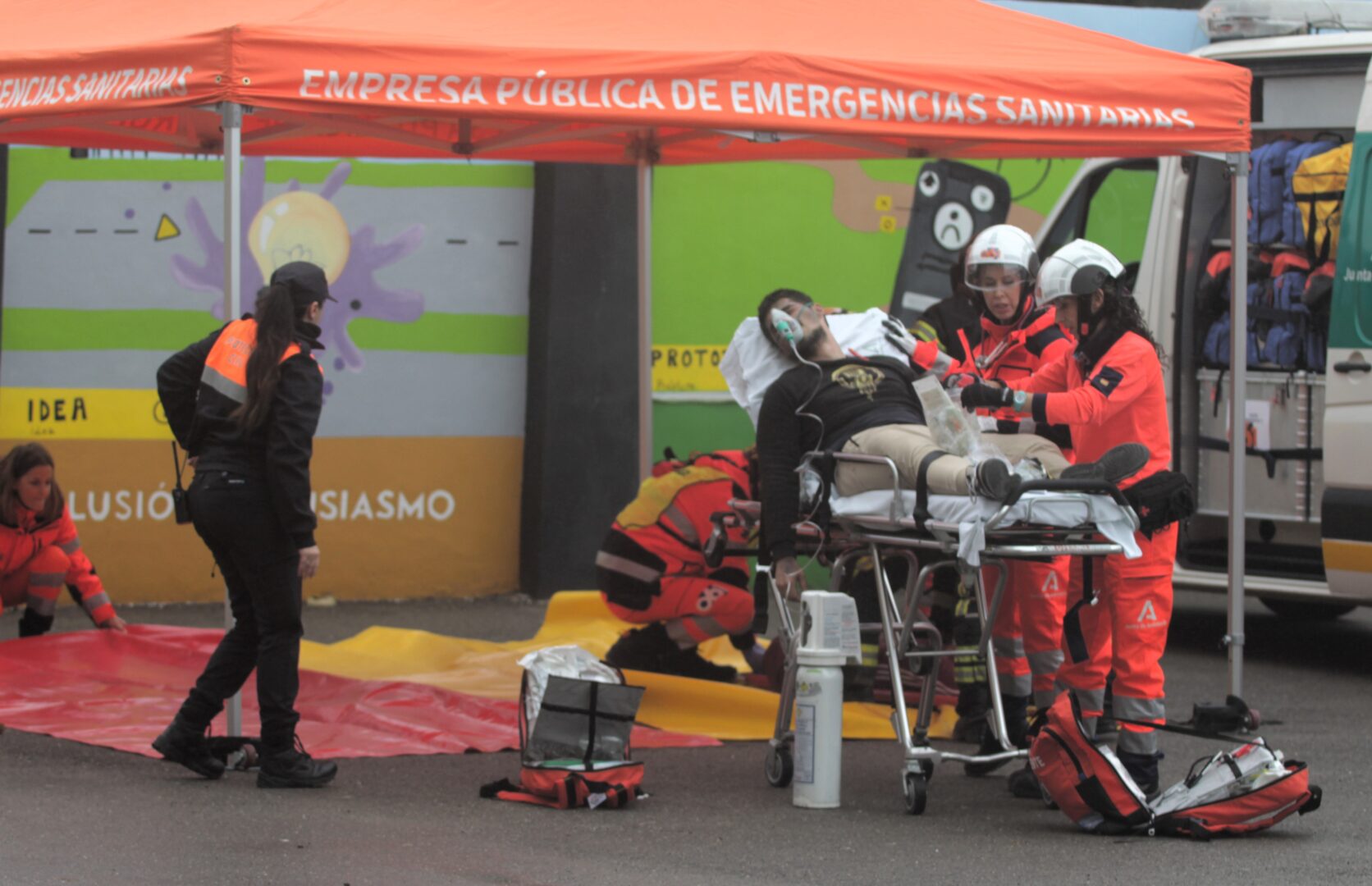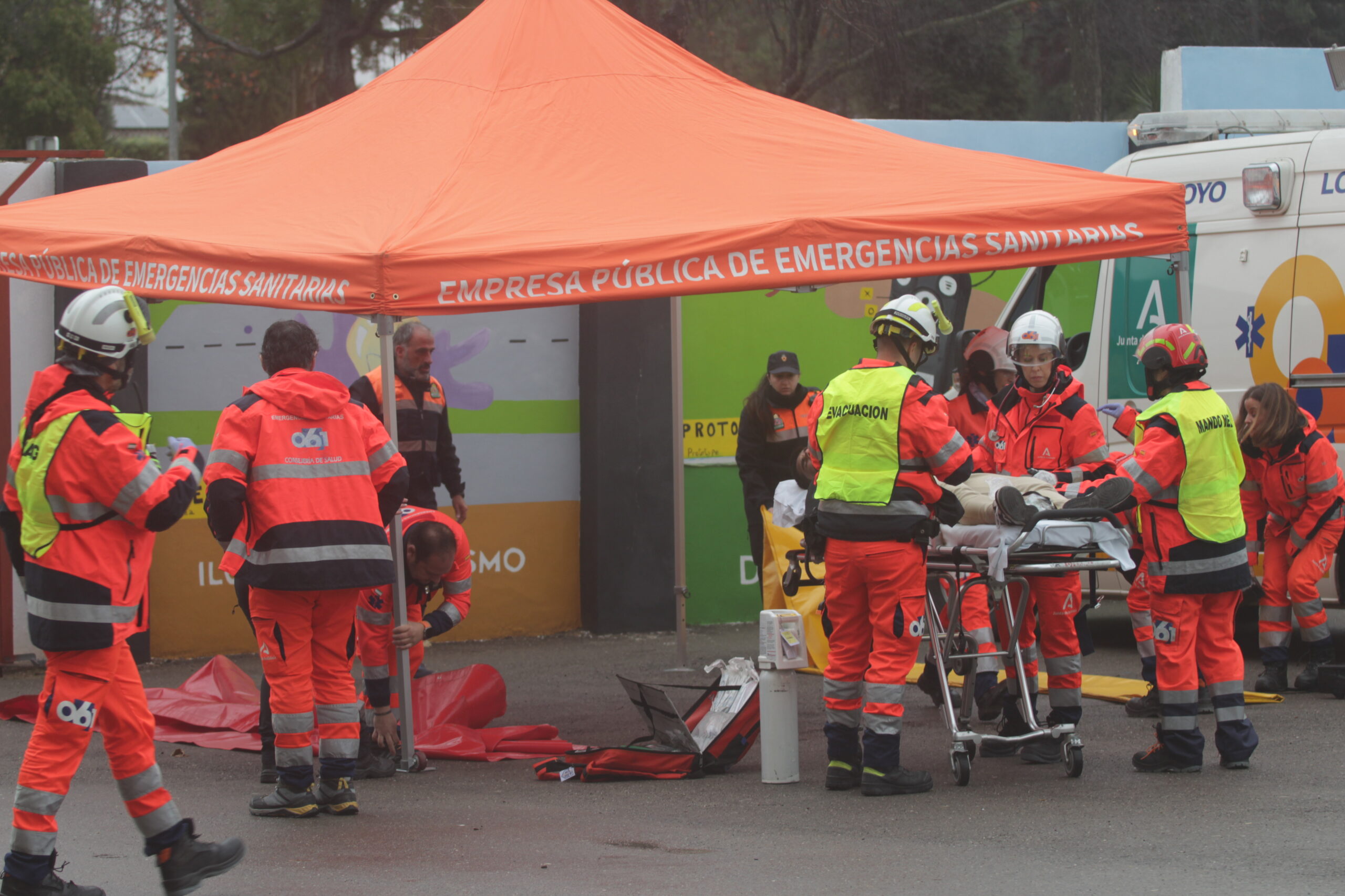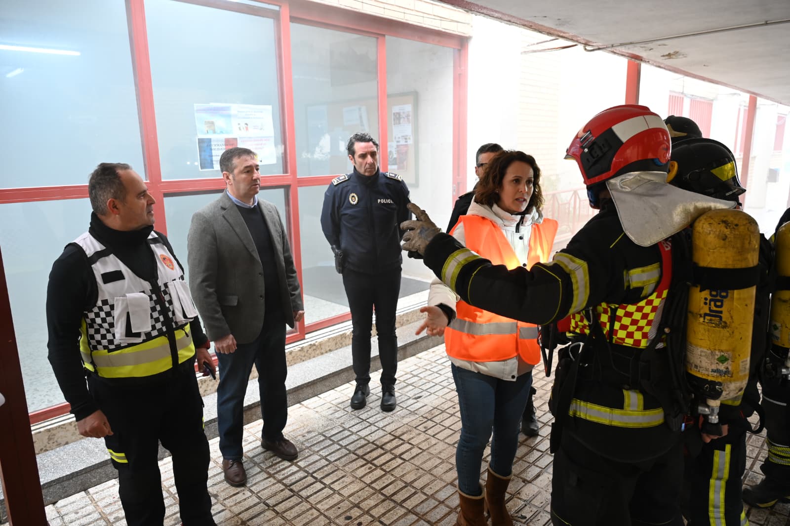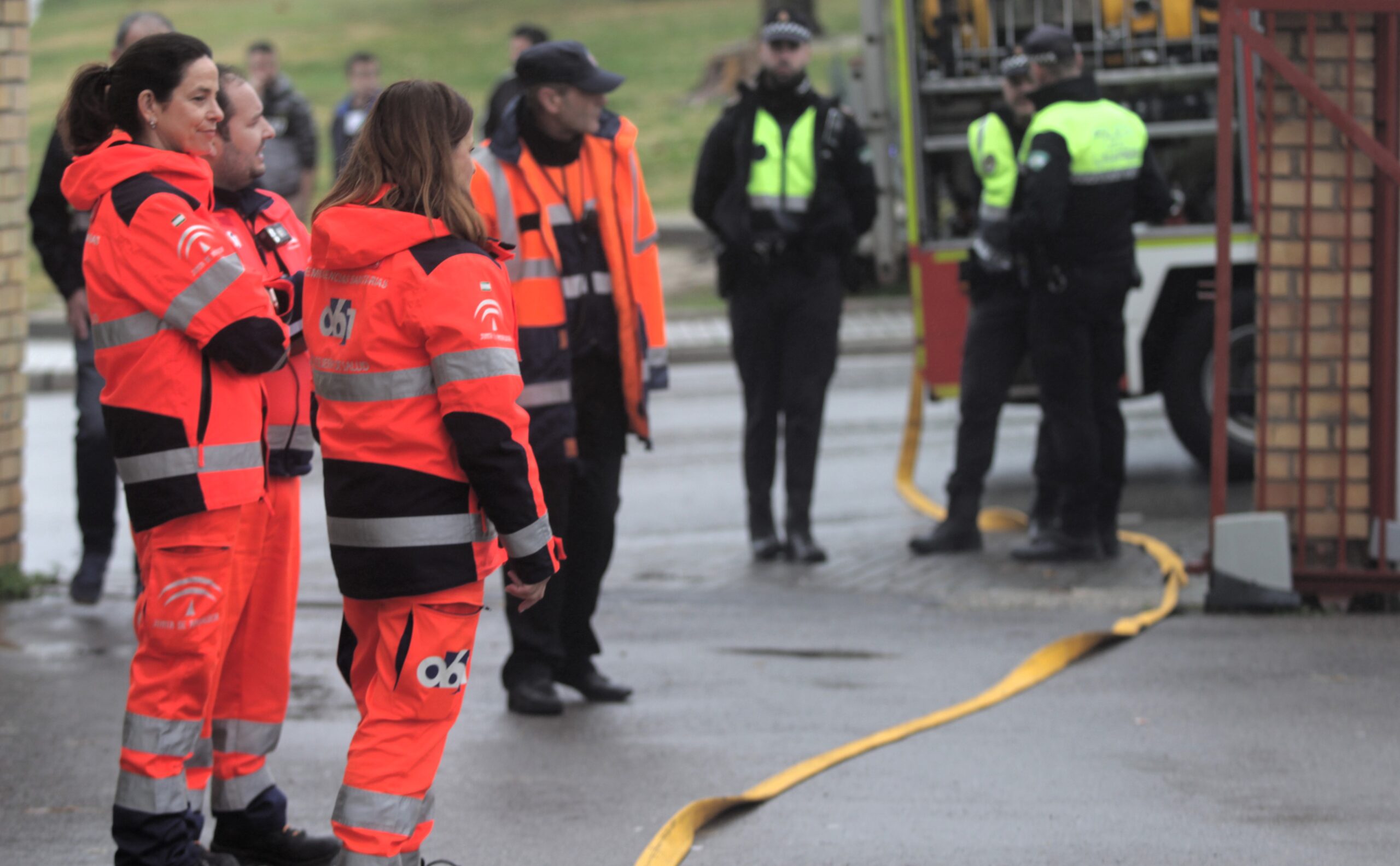 La respuesta fue inmediata y coral. Profesorado y personal no docente activaron sus funciones como equipos de primera intervención, primeros auxilios y evacuación. Minutos después, el engranaje externo entró en acción: Bomberos, Policía Local y Nacional, sanitarios del 061 y Protección Civil tomaron el relevo con la precisión de un mecanismo bien engrasado. El instituto pasó a ser un tablero complejo donde cada decisión contaba y cada segundo pesaba.