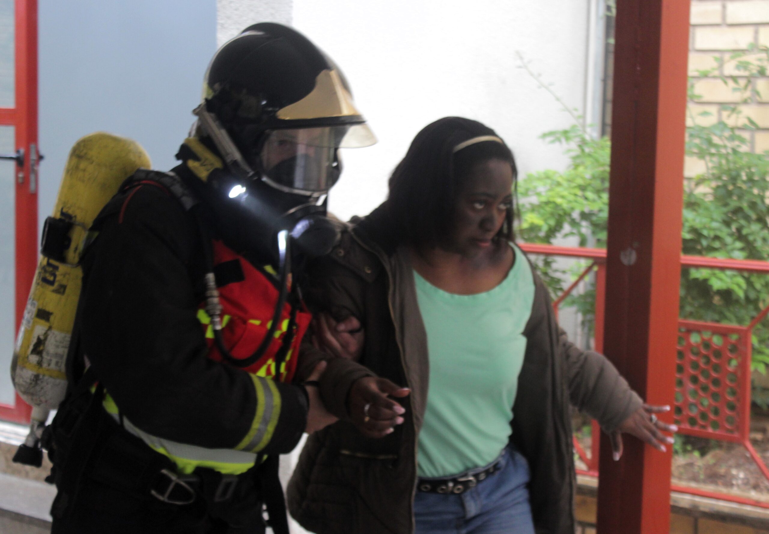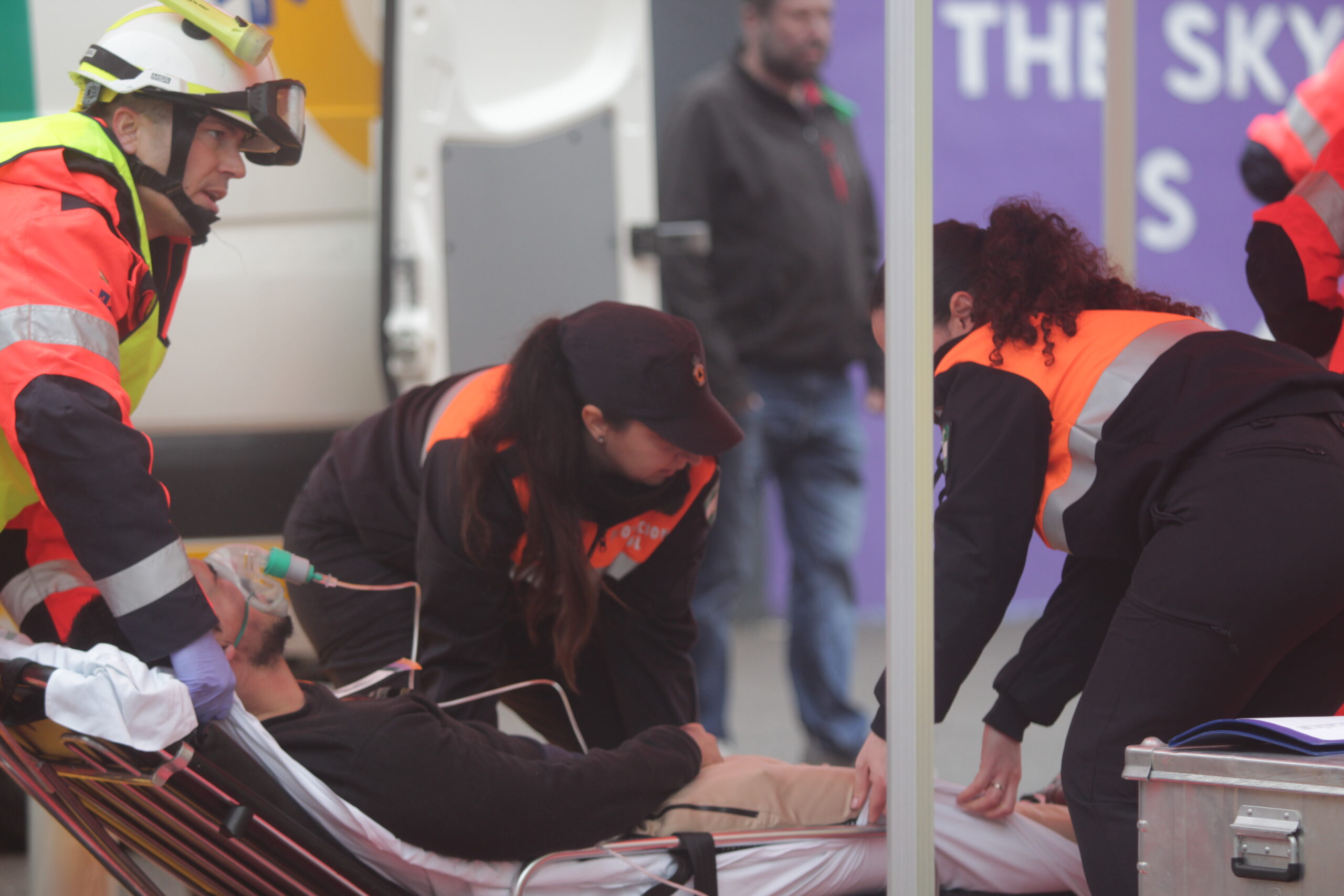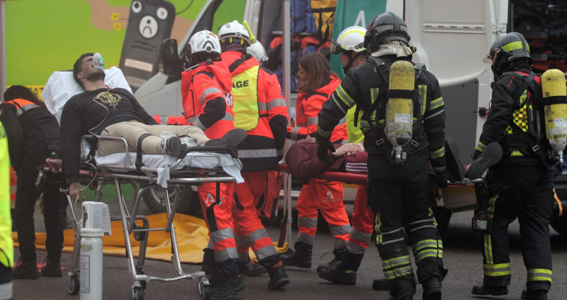 Mientras los edificios B, C, D y E eran evacuados con orden hacia las pistas deportivas —zona segura prevista—, el corazón del instituto latía en el edificio A. Allí, más de 400 alumnos permanecieron confinados en las aulas, a la espera de que los bomberos despejaran escaleras y pasillos invadidos por el humo. Abajo, en la planta baja, la escena era más tensa: intoxicaciones, quemaduras simuladas, gritos de pánico cuidadosamente ensayados para poner a prueba la sangre fría de los equipos de intervención.
