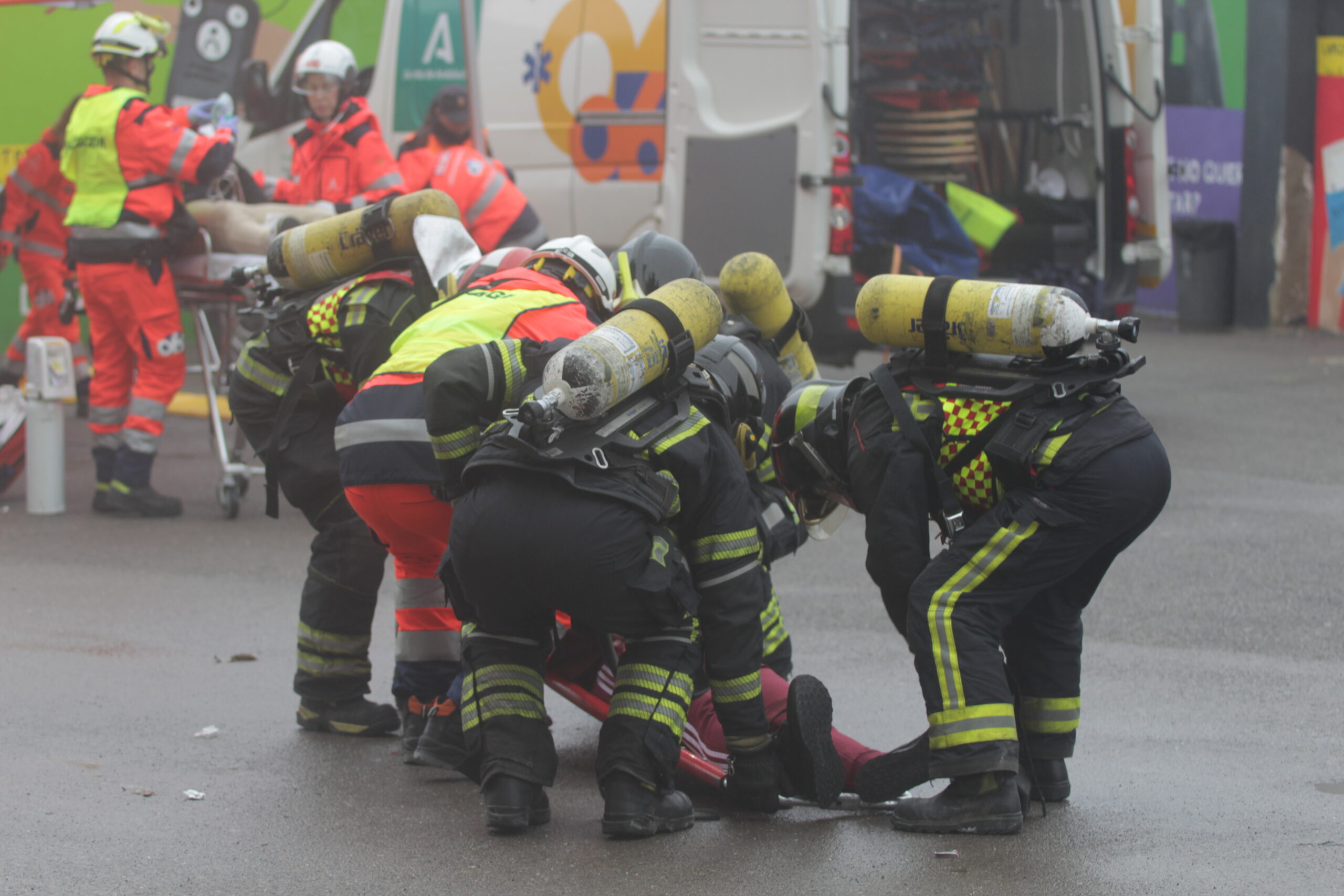 Humo denso, heridos simulados, alumnos confinados en las plantas superiores y la necesidad inmediata de activar el Plan de Autoprotección del centro. Nada quedó al azar, porque en una emergencia real el azar siempre juega en contra.