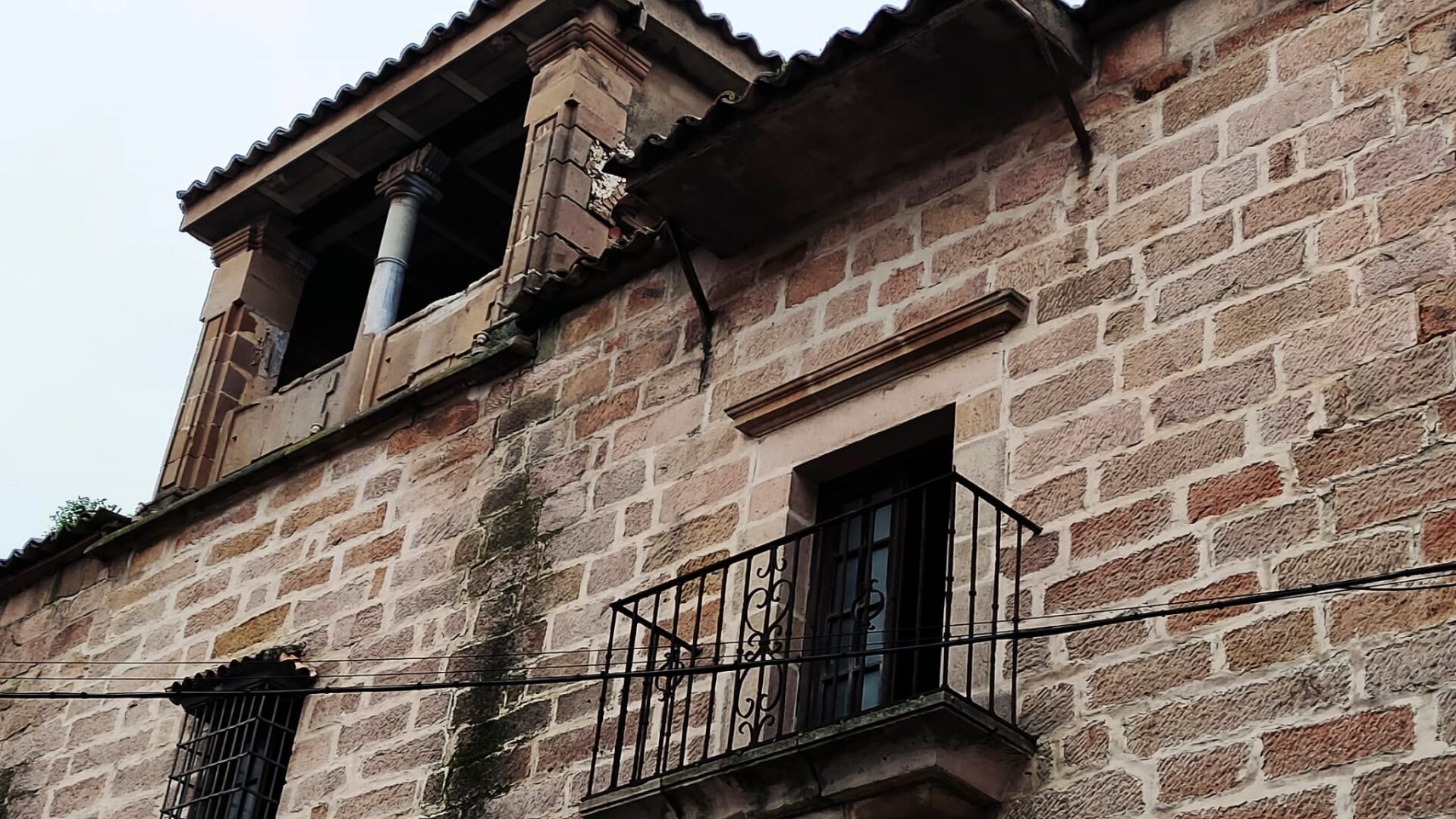 Especialmente preocupante es el estado de los dos escudos nobiliarios que custodian el acceso. La erosión ha redondeado sus aristas y difuminado sus relieves en los últimos años, borrando la nitidez que permitía leer con claridad el linaje de los Zambrana. A esta degradación se suma el abandono de los elementos complementarios: carpinterías con vidrios fracturados y una forja, devorada por la oxidación, que ha perdido la prestancia de antaño.