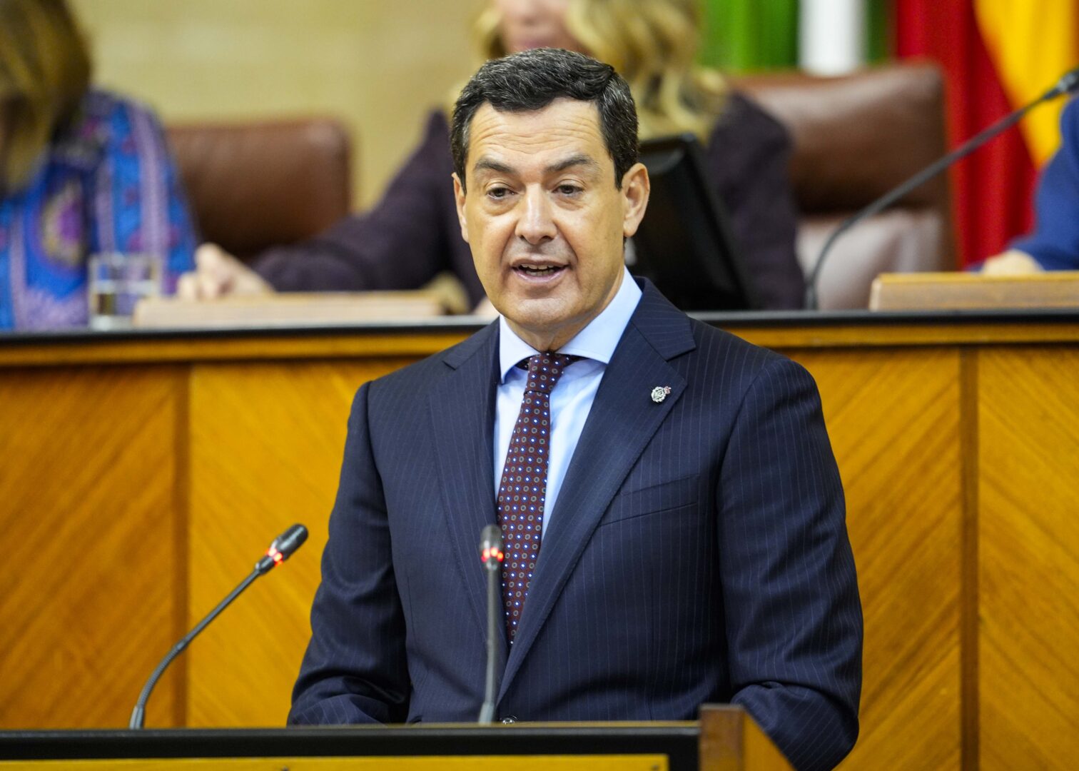 Juanma Moreno durante su intervención en el l debate sobre el Estado de la Comunidad. Foto: Parlamento de Andalucía