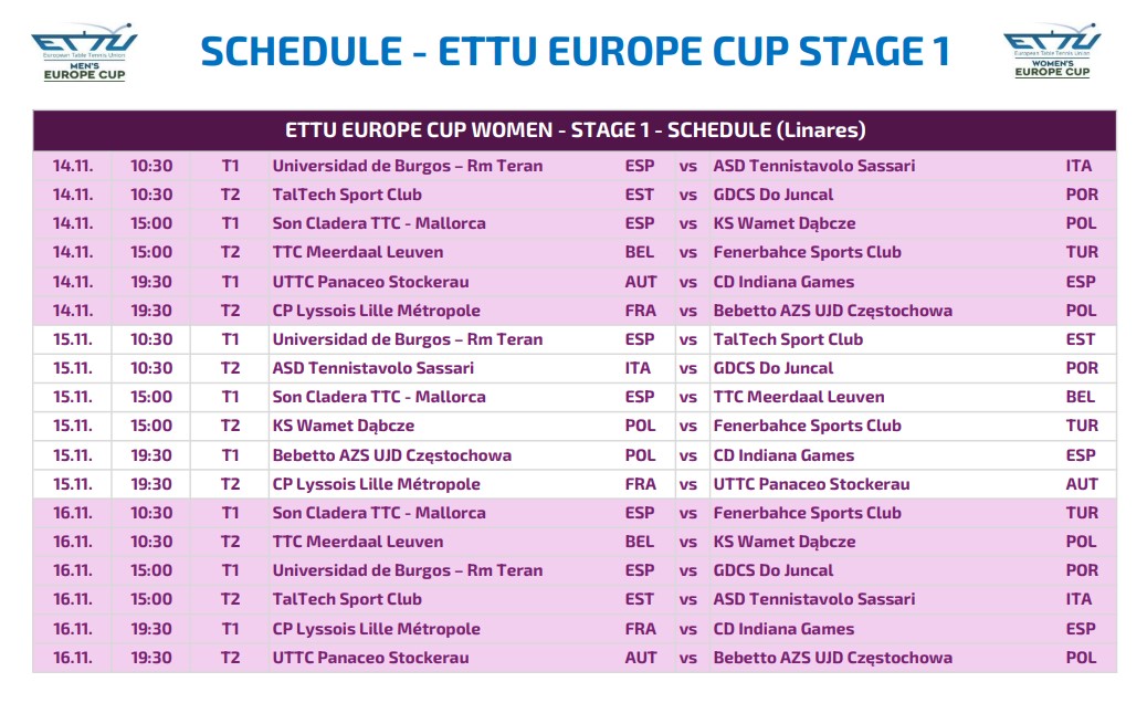El Cliniqas.com (nombre comercial del CD Indiana Games) debutará el viernes 14 de noviembres, a las siete y media de la tarde, contra el conjunto austríaco del UTTC Panaceo Stockerau. Encuadrado en el Grupo B, también se medirá con el Lyssois Lille Metropole (Francia y Bebetto AZS UJD Częstochowa (Polonia).
