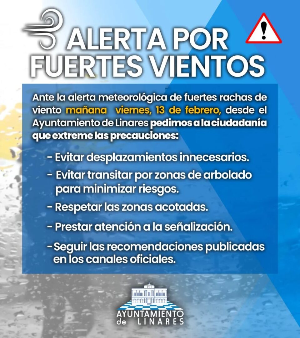 La borrasca Oriana pone de nuevo en alerta a Linares este viernes por lluvia y fuerte viento