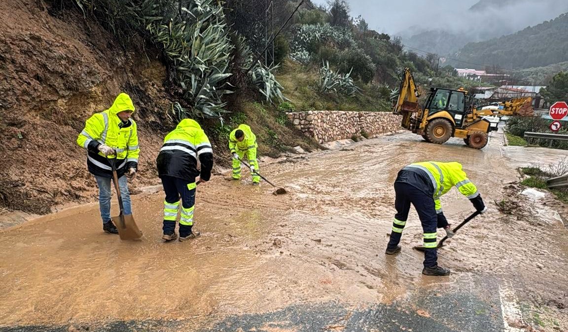La Diputación de Jaén sigue para atender las incidencias provocadas por el temporal de lluvia y viento en más de treinta carreteras de la Red Provincial bajo su competencia, principalmente en el sur de la provincia.