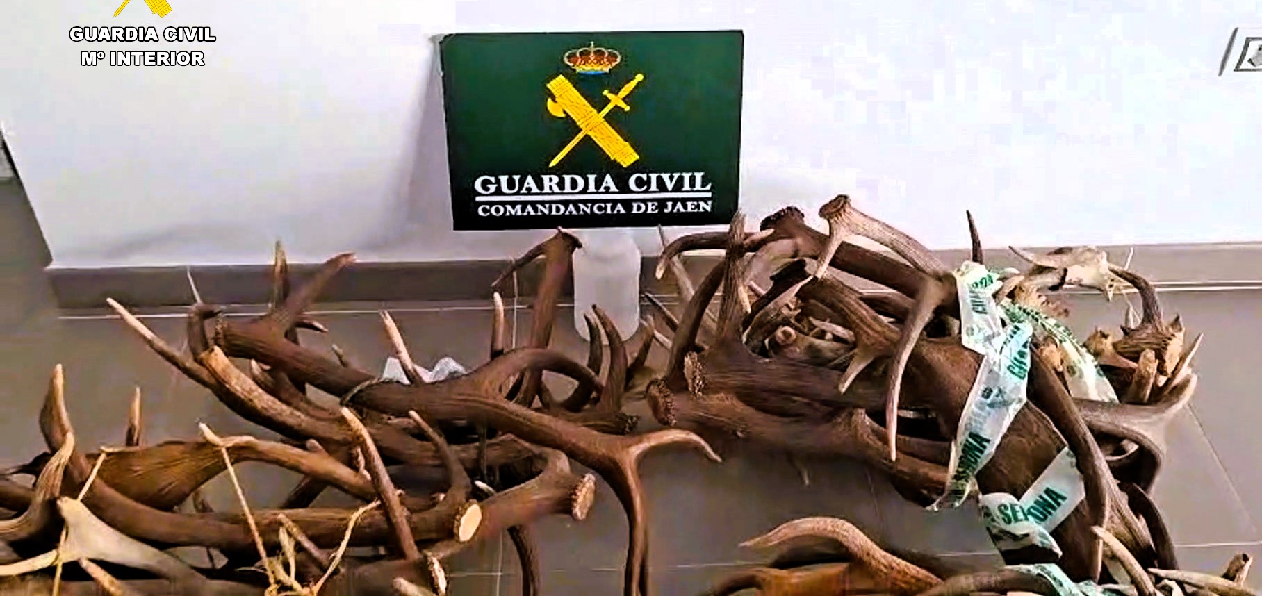 El registro del vehículo permitió localizar en el maletero dos grandes morrales de caza con numerosas armas blancas, un trípode de apoyo para armas de fuego, una linterna, un serrucho, vainas de cartuchería metálica y un importante número de trofeos: 30 cuernas de ciervo y cuatro de gamo, todas ellas serradas y con restos de sangre y pelo. También se encontraron dos desmogues de ciervo, correspondientes a astas desprendidas de forma natural.