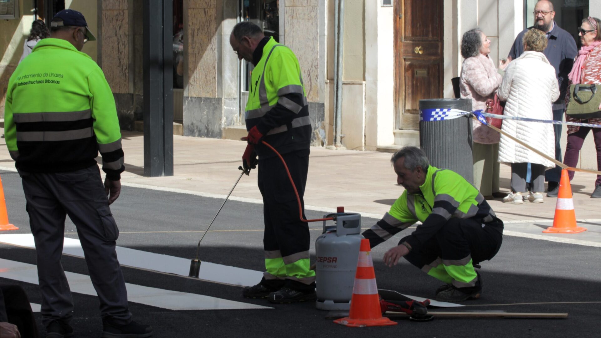 La señalización horizontal culmina la transición del adoquín al asfalto en el centro de Linares