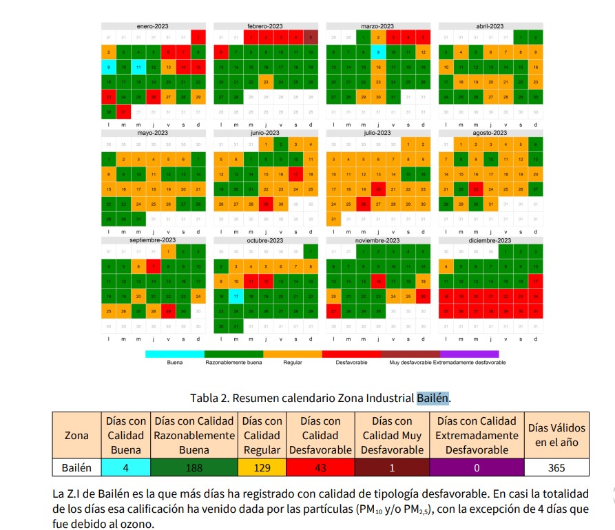 Datos de la estación de la zona industrial de Bailén de los años 2024, 2023 y 2022. Fuente: Consejería de Sostenibilidad y Medio Ambiente