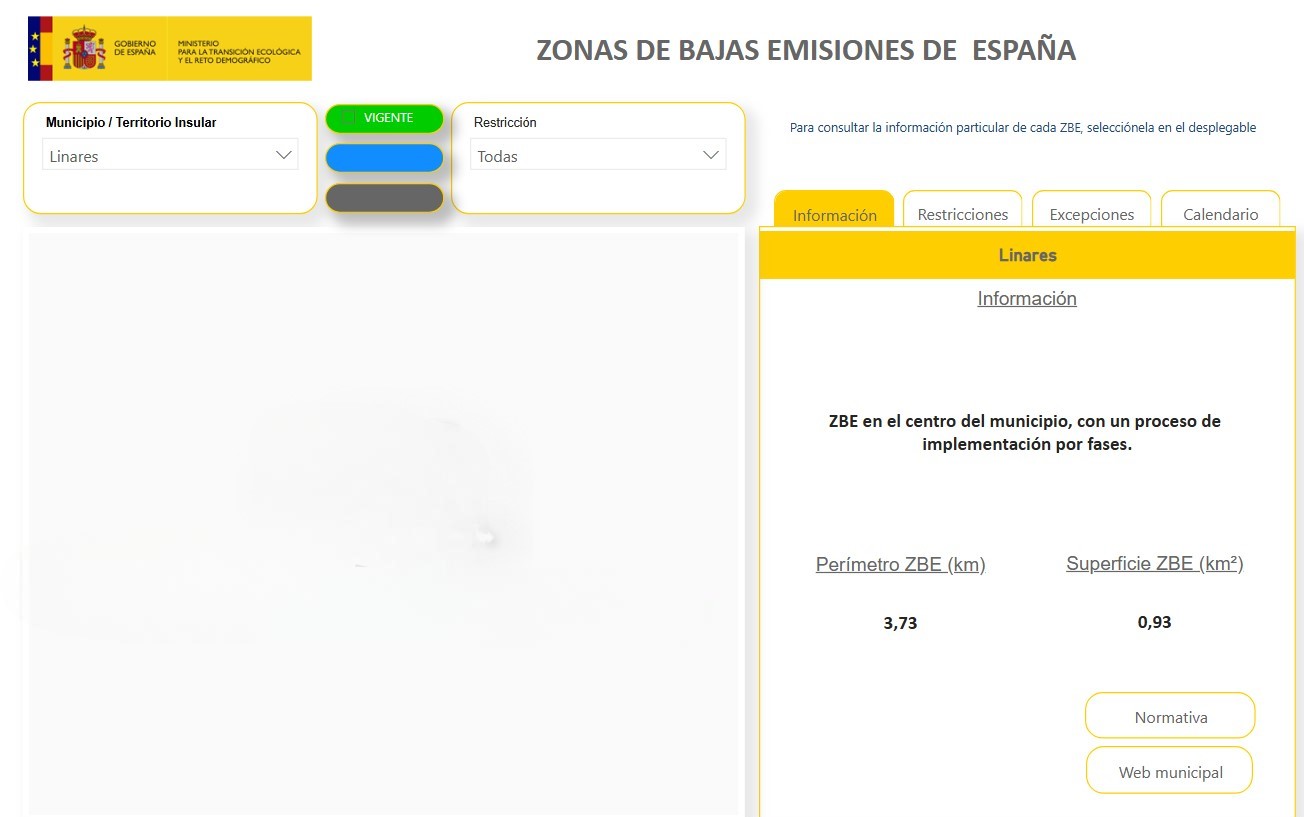 De momento, 56 localidades españolas, entre las que se encuentra Linares, la tienen en vigor. Por lo tanto, es necesario el uso de etiqueta medioambiental para acceder y circular por el centro del municipio, según los datos actualizados del Ministerio para la Transición Ecológica (Miteco) a cierre de 2025.