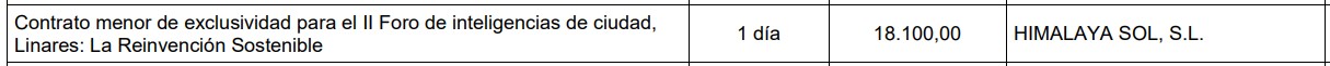 El Consistorio formalizó un «contrato menor de exclusividad» con la empresa Himalaya Sol SL, con domicilio fiscal en Valdefresno (León), dedicada a actividades deportivas, recreativas y de entretenimiento y de la que es titular Jesús Calleja. El pago aparece en la relación de contratos menores del Consistorio linarense que se puede ver en la sede electrónica.
