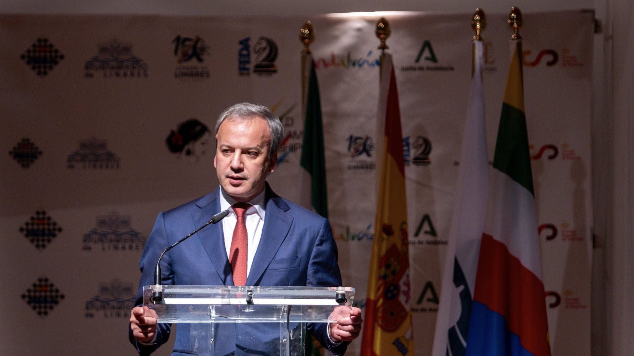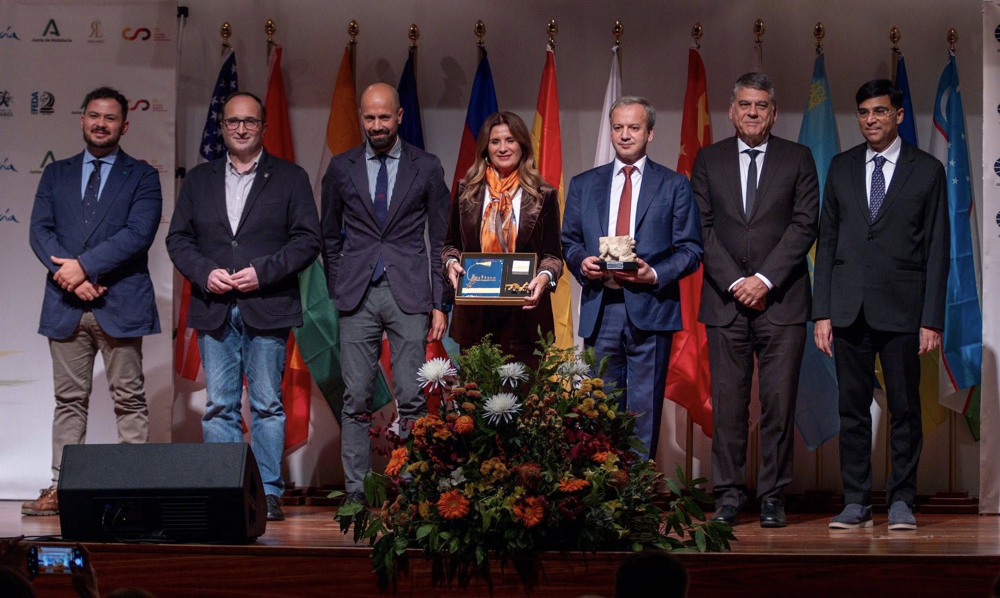 El acto contó con la presencia de la alcaldesa, Auxi del Olmo; del director general de Eventos e Instalaciones Deportivas de la Junta de Andalucía, Gorka Lerchundi; del delegado territorial de Turismo y Deporte, José Ayala; y de los presidentes de la Federación Internacional de Ajedrez y de la Española, Arkady Dvorkovich y Javier Ochoa, respectivamente.