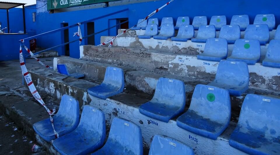 El problema no solo está en esa zona del campo, sino en lo poco que queda en pie debido a las obras de remodelación del campo, que están paralizadas y no se retomarán hasta que se adjudiquen de nuevo.