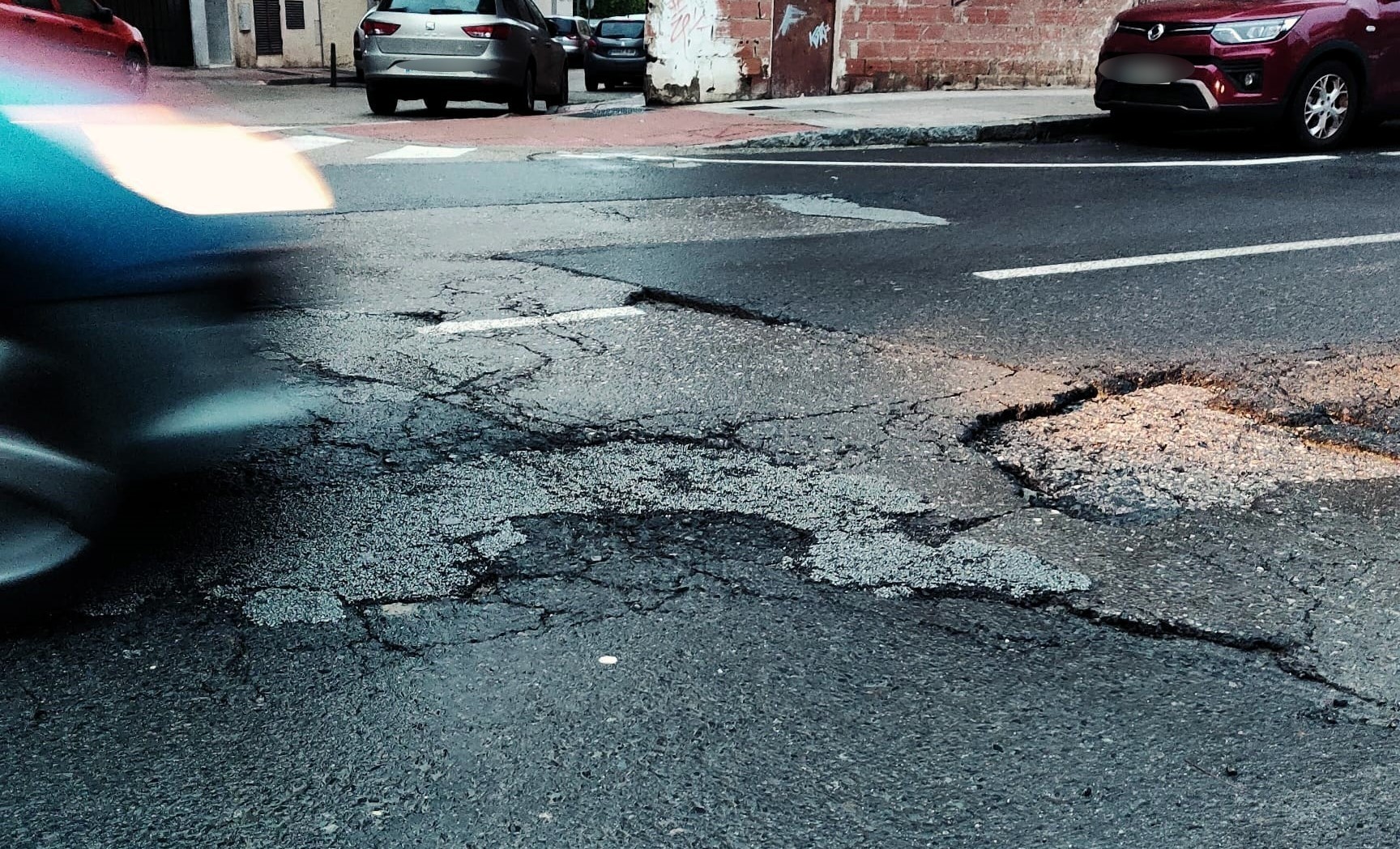 El estado de la calzada no solo afecta a la comodidad de la conducción, sino también a la seguridad vial. Las grietas profundas y los desniveles suponen un riesgo añadido, especialmente en condiciones de lluvia o para vehículos de dos ruedas. A ello se suma la imagen de abandono que transmite una vía urbana con el firme visiblemente fatigado y sin una intervención integral reciente.