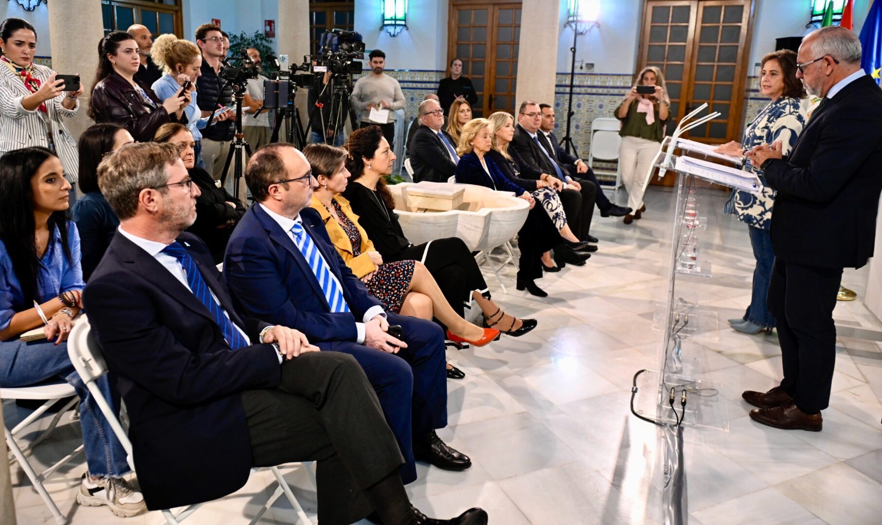 Delegados territoriales y periodistas atienden a Catalina García y Jesús Estrella.