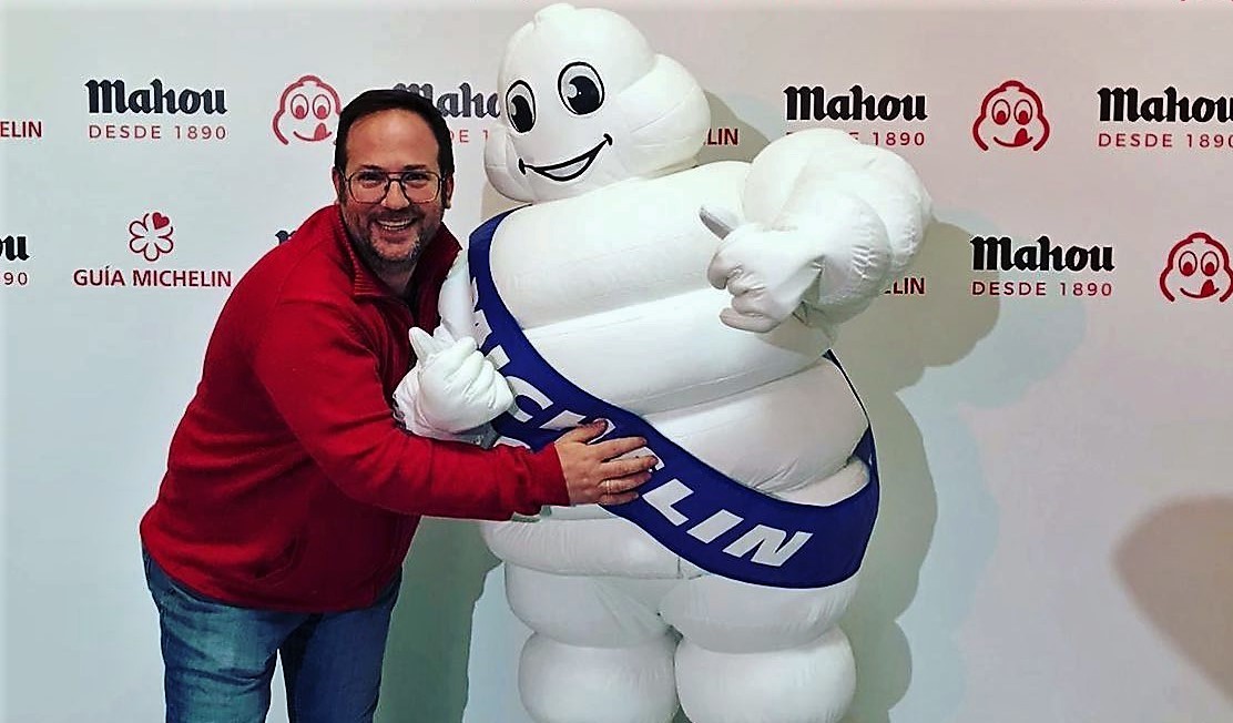 Imagen de archivo de Juan Pablo Gámez con el famoso muñeco de la Guía Michelin.