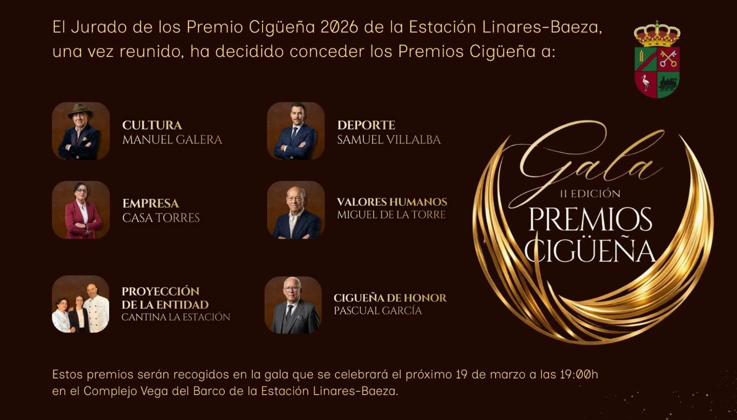 Este jueves 19 de marzo, en el Complejo Vega del Barco, a las 19 horas, historia, esfuerzo y emoción se unirán en una noche única, llena de sorpresas y momentos memorables, donde se premiará a personas y proyectos que marcan la diferencia en deporte, cultura, empresa, valores humanos, proyección de la entidad y la Cigüeña de Honor. Una cita ineludible que reivindica el orgullo y la identidad de la Estación Linares-Baeza.