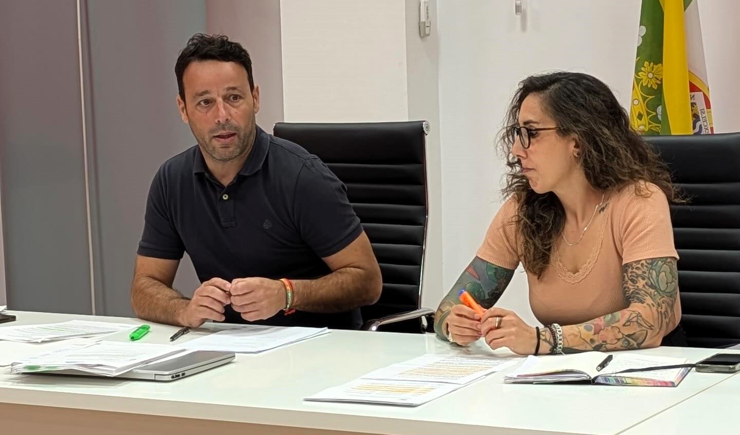 Los líderes municipales del PSOE y de Izquierda Unida, Javier Perales y Laura Cerezuela, transmitieron este martes a los trabajadores del Ayuntamiento su enorme preocupación ante la propuesta del equipo de Gobierno del Partido Popular de crear una empresa de servicios para gestionar la limpieza de colegios y dependencias municipales, la grúa y los aparcamientos públicos.