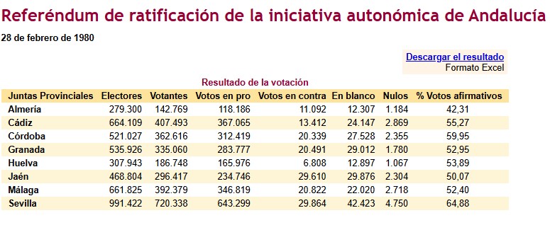 La provincia de Jaén, en su conjunto, también dio la mayoría al “sí”, aunque con mayor estrechez. Según los datos oficiales provinciales -que se pueden consultar en el Museo de la Autonomía de Andalucía-, el voto afirmativo se situó en el 50,07% sobre el total del censo, en el límite mismo de lo exigido por la ley para validar el proceso.