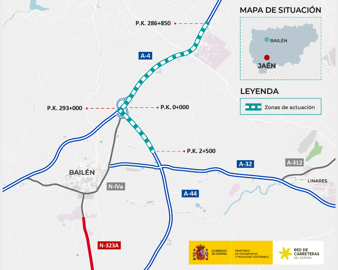El objetivo de este contrato es mejorar la movilidad y la seguridad vial del enlace, conectando las carreteras A-44 y la A-4 mediante un ramal de dos carriles. Con estos trabajos se mejorará la movilidad y la seguridad vial en este enlace, reduciendo la congestión del tráfico existente.