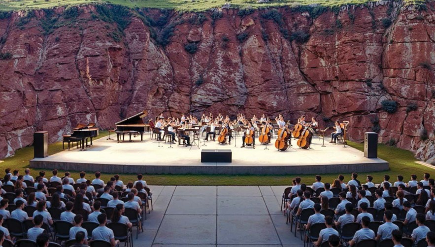 La iniciativa se asienta sobre una idea clave: convertir un espacio degradado y en desuso en un foco de actividad cultural contemporánea. La antigua cantera, con su imponente pared de piedra rojiza, se transformaría en un auditorio natural con capacidad para más de mil espectadores, integrando paisaje, memoria e innovación.