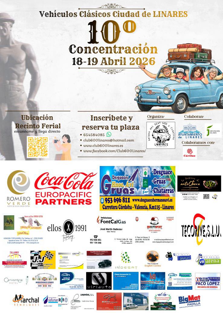 Esta décima edición, organizada por la Asociación de Amigos del SEAT 600 y Clásicos de Linares, destaca además por su firme compromiso social. La organización ha confirmado que la concentración servirá para colaborar con Cáritas, uniendo la pasión por el motor con el apoyo a los colectivos más vulnerables a través de la donación de alimentos.