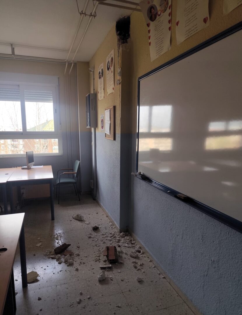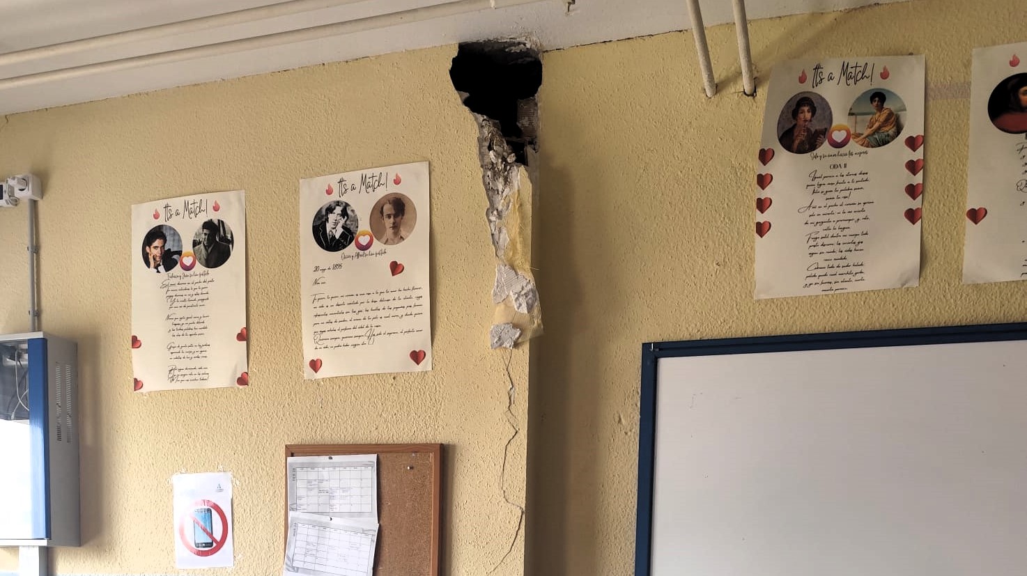 A partir de ese momento se sucedieron intervenciones en el edificio, algunas durante el horario lectivo, que habrían provocado grietas en paredes y el desplazamiento de una luminaria que estuvo a punto de caer sobre una docente mientras impartía clase. El centro presenta además goteras y parte de los baños del gimnasio permanecen cerrados por riesgo de desprendimientos.